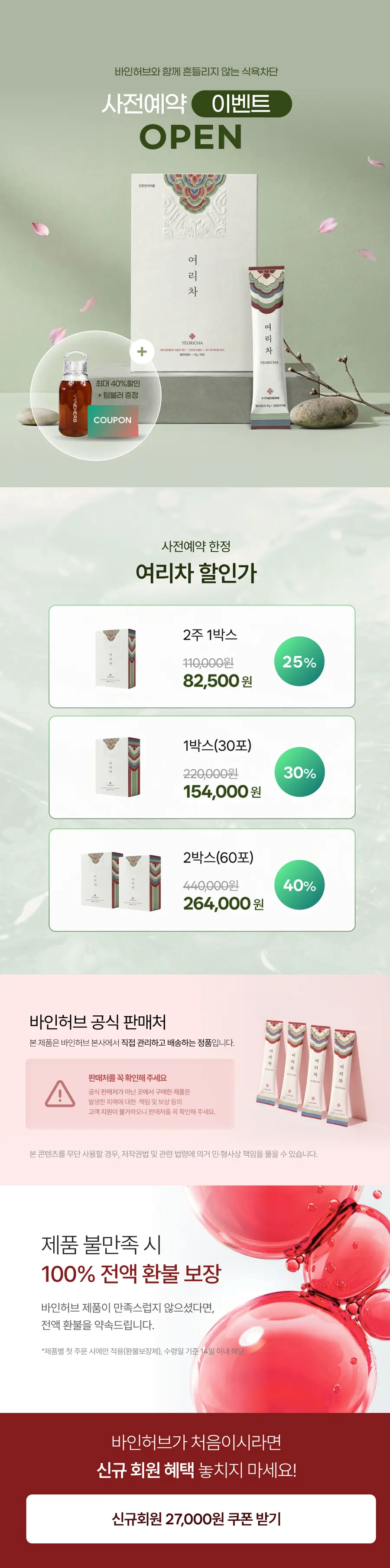 바인허브 여리차는 식욕 억제 효과가 뛰어나 식후 복용을 권장합니다.